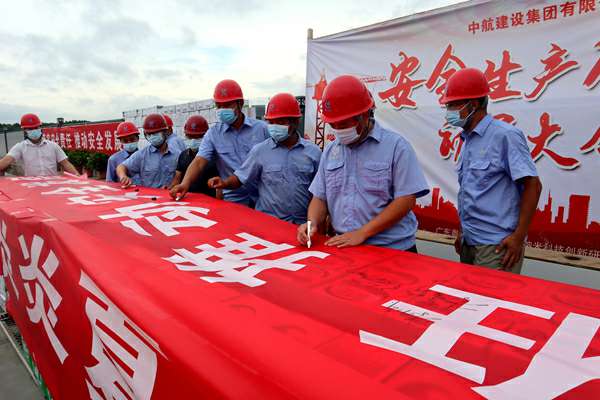 本次活动中,现场人员一起进行了庄严的安全宣誓,并在主题横幅上签名。南方公司和项目部为现场近1000名一线工人送上1700斤西瓜,1000箱牛奶,170箱矿泉水,藿香正气水、十滴水、清凉油等防暑药品各1000盒。