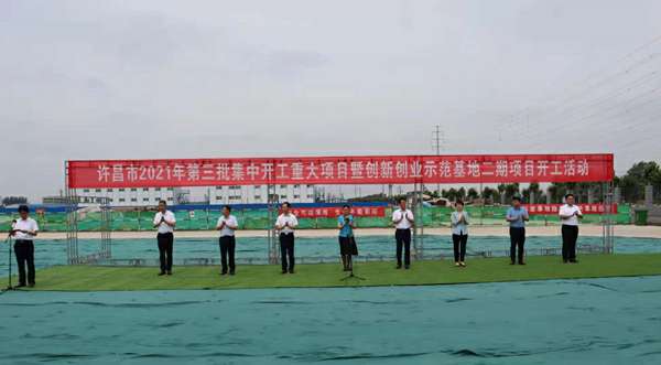 7月10日上午,河南省许昌市2021年第三批集中开工重大项目暨创新创业示范基地二期项目开工仪式顺利举行。许昌市委常委、纪委书记、监委主任方婷,魏都区委书记李朝锋,区人大常委会主任申健民,区政协主席杜晓辉,区委常委、区委办主任程中山,区委常委、区纪委书记、区监委主任徐光,魏都产业集聚区管委会主任楚文选,宁波左勇贸易物流管理有限公司河南分公司总经理黄辰,魏都区政府相关部门、投资公司、产业集聚区、霸陵办事处等单位负责人参加活动。区委常委、常务副区长张挪威主持仪式。